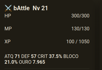 * **Dano do Jogador:** `ATK do Herói` - `DEF do Inimigo`